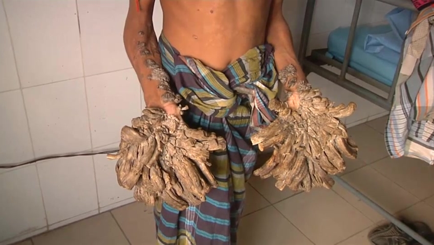 Twenty-five-year-old Abul Bajandar, formerly a rickshaw puller, was admitted to the hospital with the rare disease in which his hands and legs projected tree-like growths.