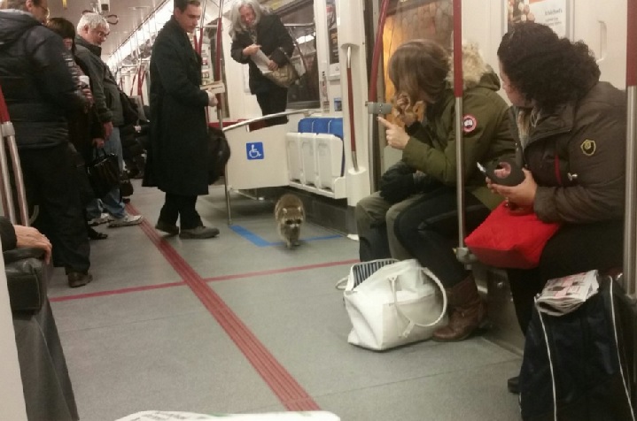 Toronto subway riders had a rather unusual guest join them on the morning commute Tuesday when a raccoon was spotted on one of the southbound trains.