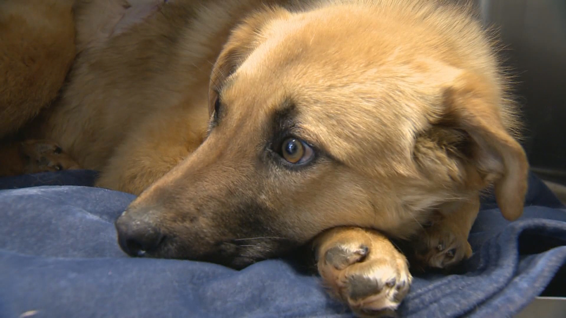 The stray pup was found by a woman who said the injured dog just appeared on her property about 45 minutes outside of Regina.