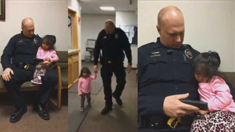 A Utah police officer is being celebrated for babysitting a little girl outside a courtroom and letting her fall asleep as she waited for her father to finish his court appearance.