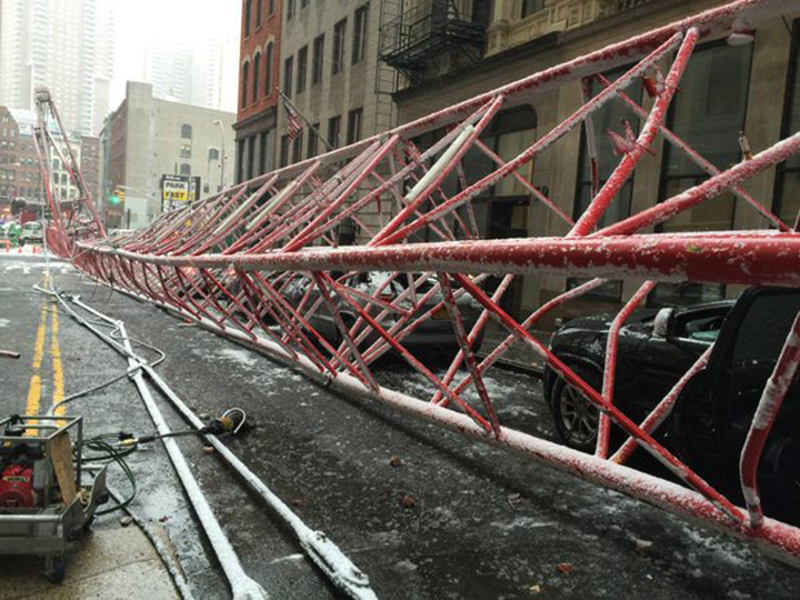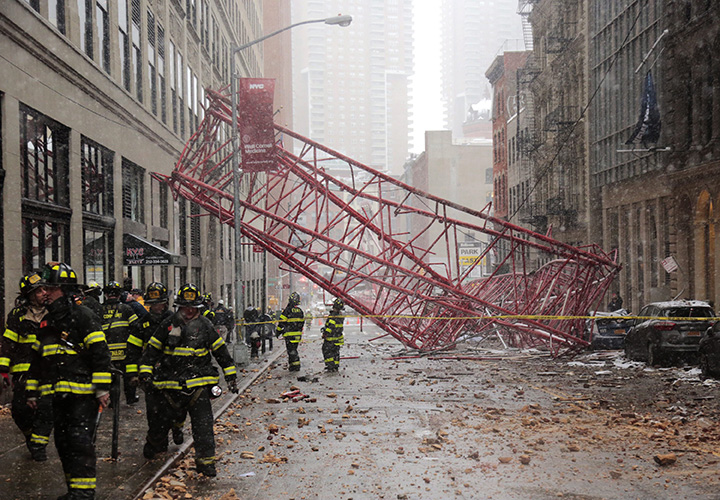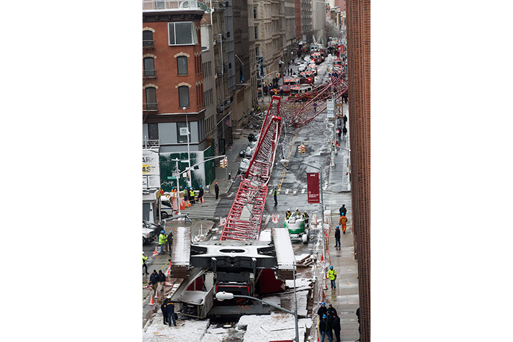 The construction crane collapsed in the borough’s Tribeca neighbourhood around 8:30 a.m., crushing several vehicles.