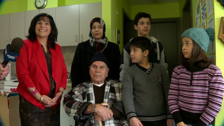 Several Syrian refugees, including an 88-year-old recent arrival to Canada, were at the news conference for the announcement.