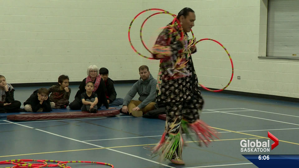SASKATOON – Some of life’s most fundamental lessons can be taught through the practice of storytelling, according to an aboriginal hoop dancer who was before a group of Saskatoon elementary school students Thursday afternoon.