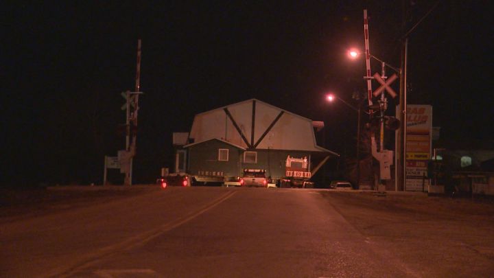 Eventually, work crews were able to move the truck off the tracks and put new tires on it but workers said the house won’t be moved until 9 a.m. on Thursday morning at the earliest.