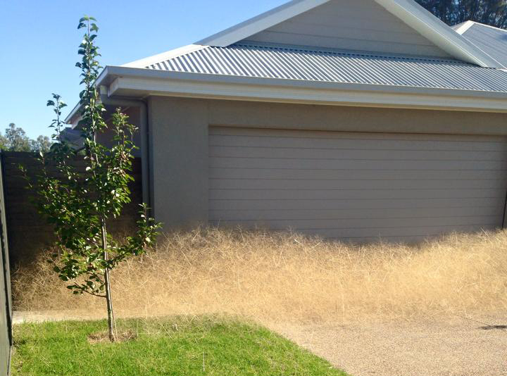 The tumbleweed is reaching heights of two metres and making it difficult for people to carry out normal tasks.