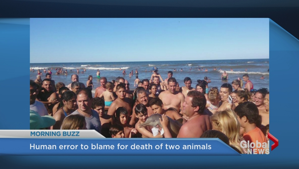 A baby dolphin is dead after beachgoers on an Argentinian beach passed it around and snapped photos with the mammal.