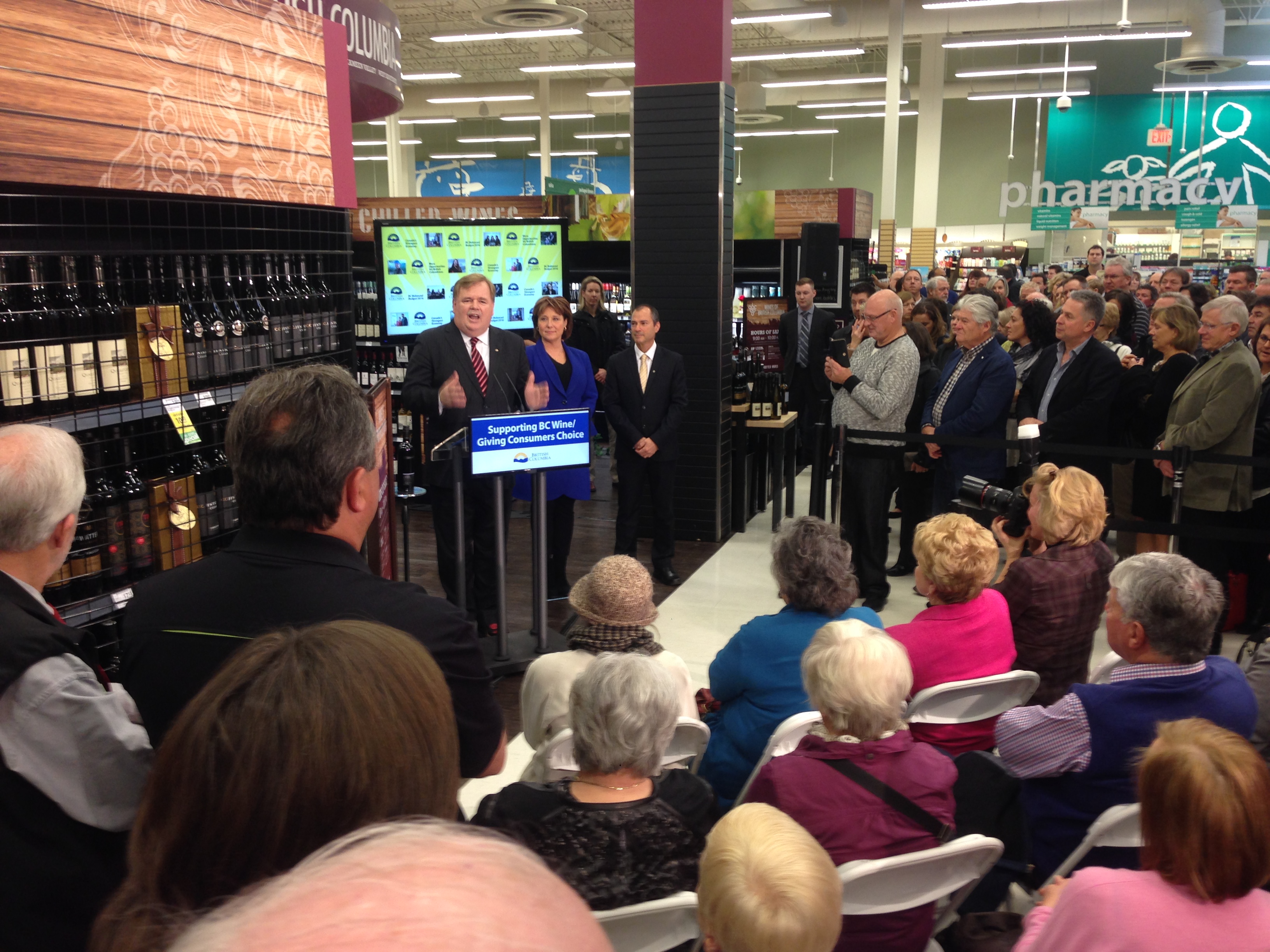 A large crowd gathered as Save-On-Foods President Darrell Jones, B.C. Premier Christy Clark and other dignitaries unveiled the wine section.