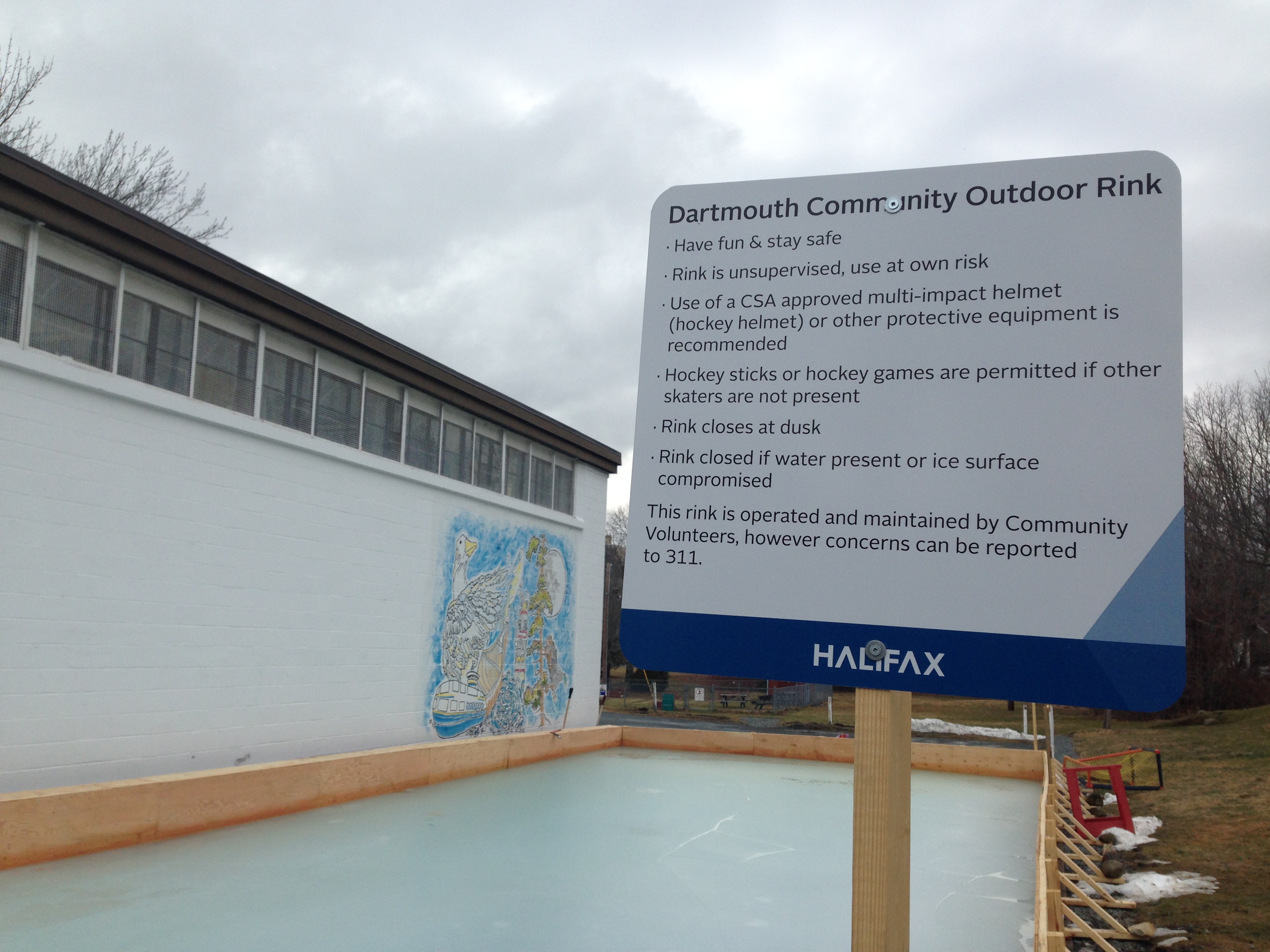 It kept a similar layout to the old sign but the former Halifax Regional Municipality logo was replaced by the Halifax logo.