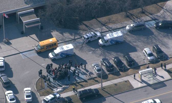 The incident took place around 8:30 a.m. ET. at Dunbarton High School at 655 Sheppard Ave. as students were heading to class.