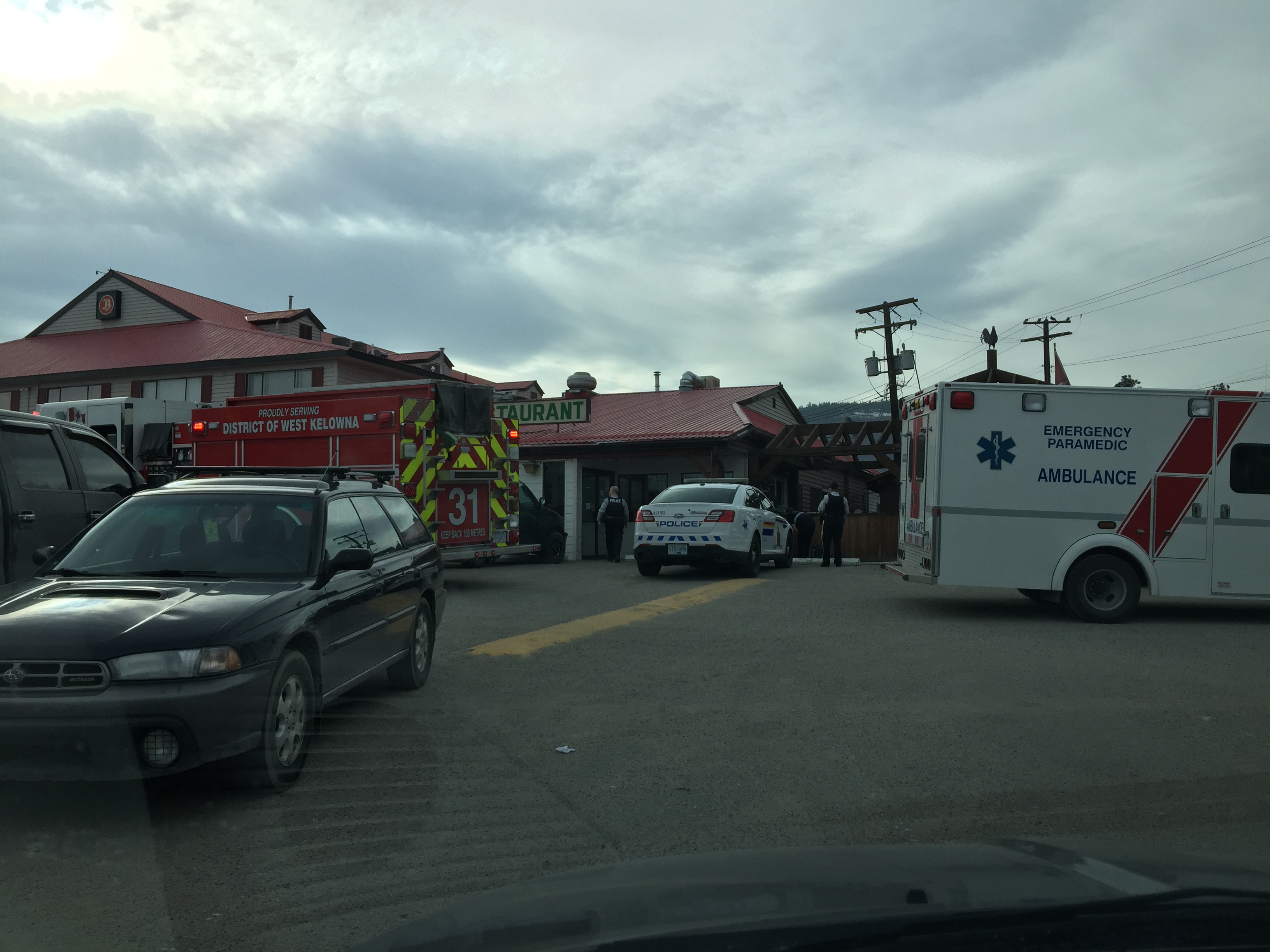 West Kelowna RCMP responded to a 9-1-1 call from patrons at Cherry Pit restaurant shortly after 2 p.m.