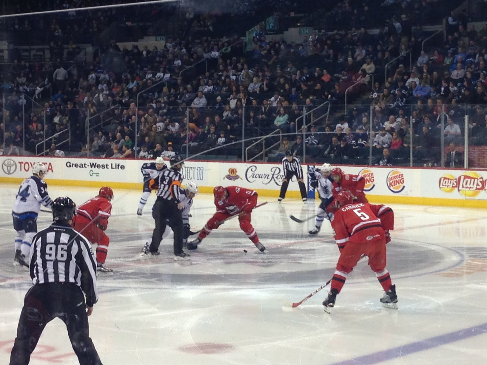 The Checkers answered back at the 7:46 mark. Sergey Tolchinsky passed it to Derek Ryan in the slot and he slid the puck in through the 5-hole on Comrie. Ryan’s 15th goal of the season was a powerplay marker. Ryan Murphy also drew an assist and it was 2-1. Charlotte outshot Manitoba 16-5 in the opening period.