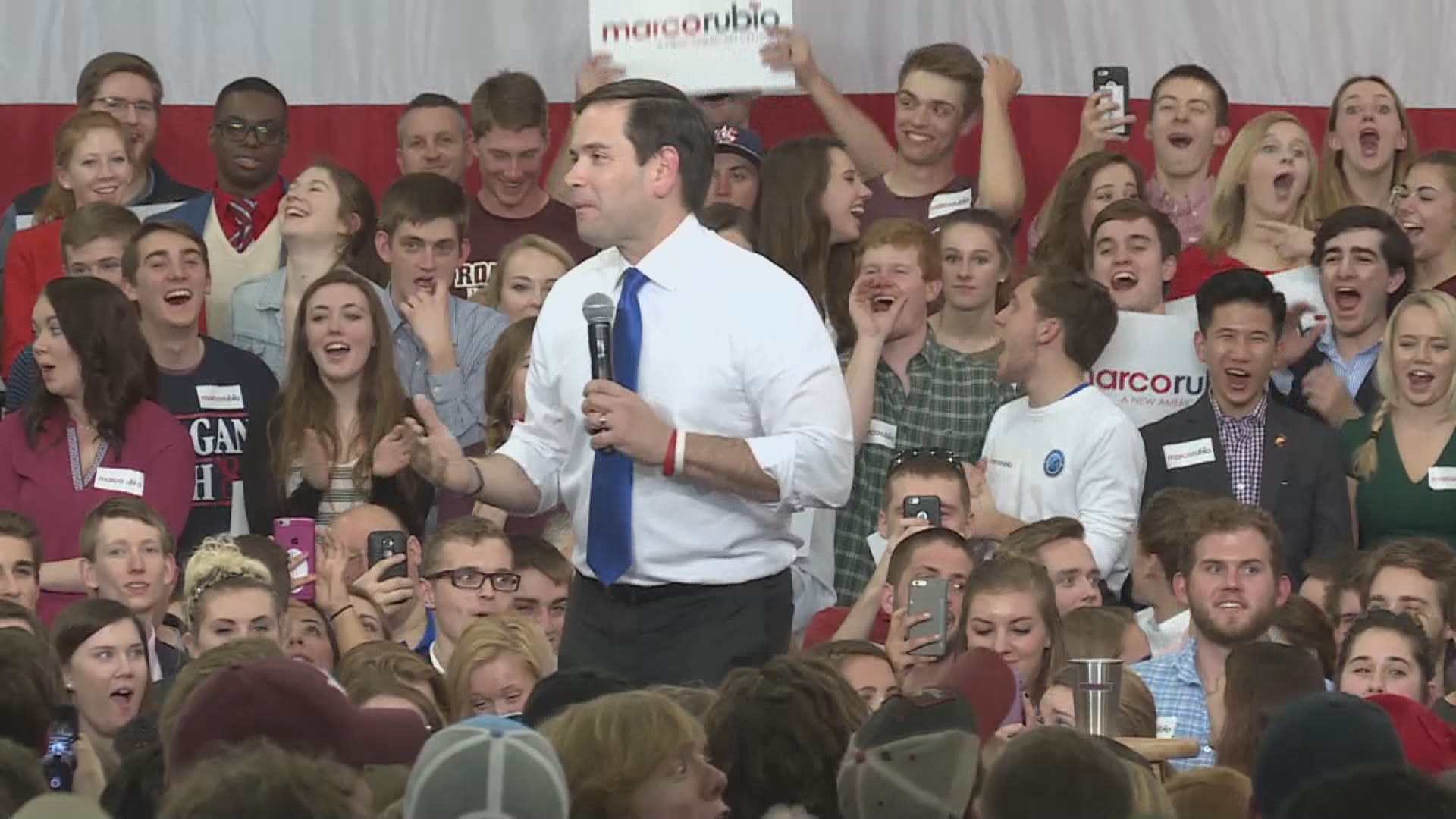 During a rally for students at Roanoke College on Sunday, Rubio responded to repeatedly being referred to as “Little Marco” by Trump, a nickname poking fun at his height.