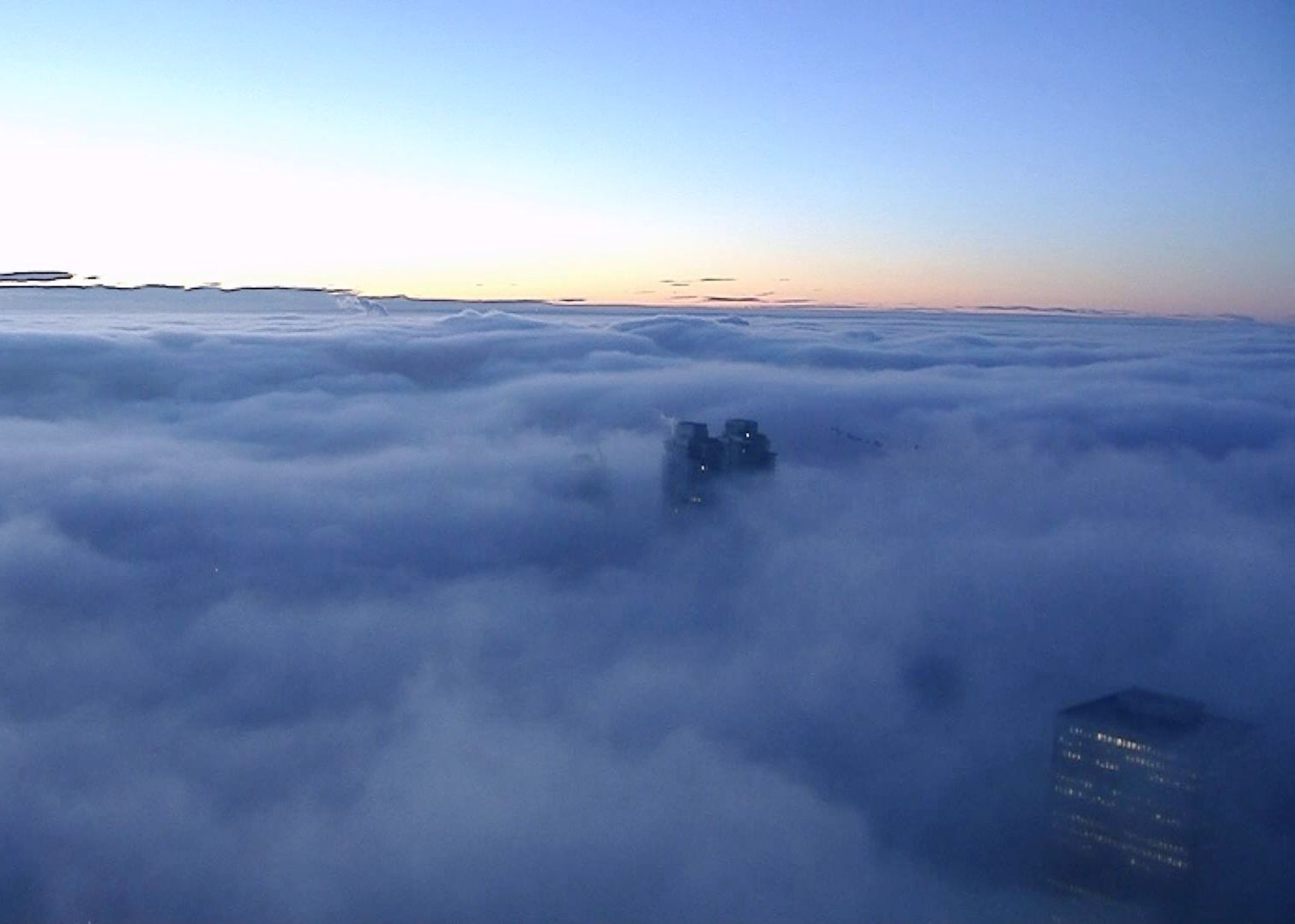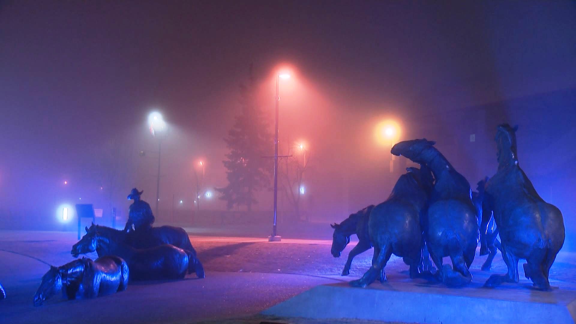 BELOW: Photos of the fog from around Calgary, including the Stampede grounds and Suncor Energy Centre