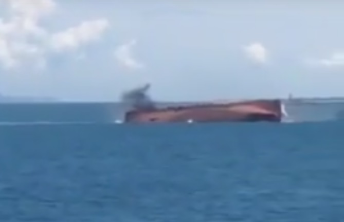 Footage broadcast by TVOne showed other ships in the background as the ferry, Tafelia 2, sank in the narrow Bali Strait. It languished on its side before capsizing.
