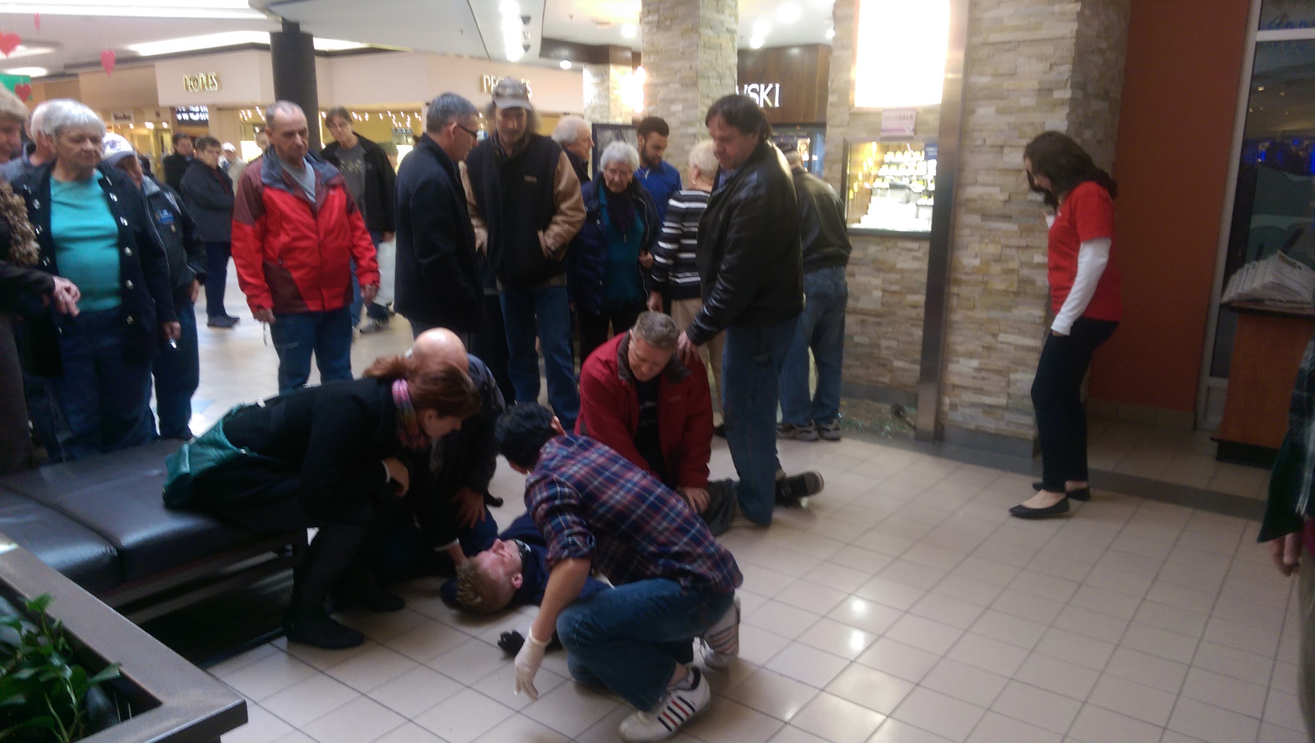 Civilian witnesses tackled and held Devon Eric Brazeau until police arrived after he smashed a window at Paris Jewellers at the Cherry Lane shopping mall on January 29th.