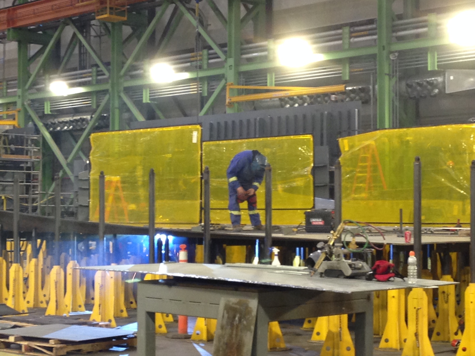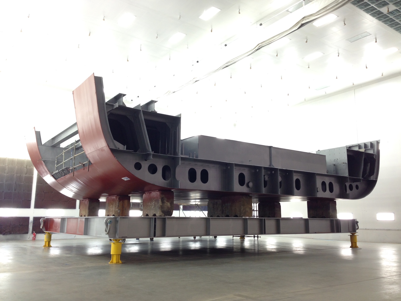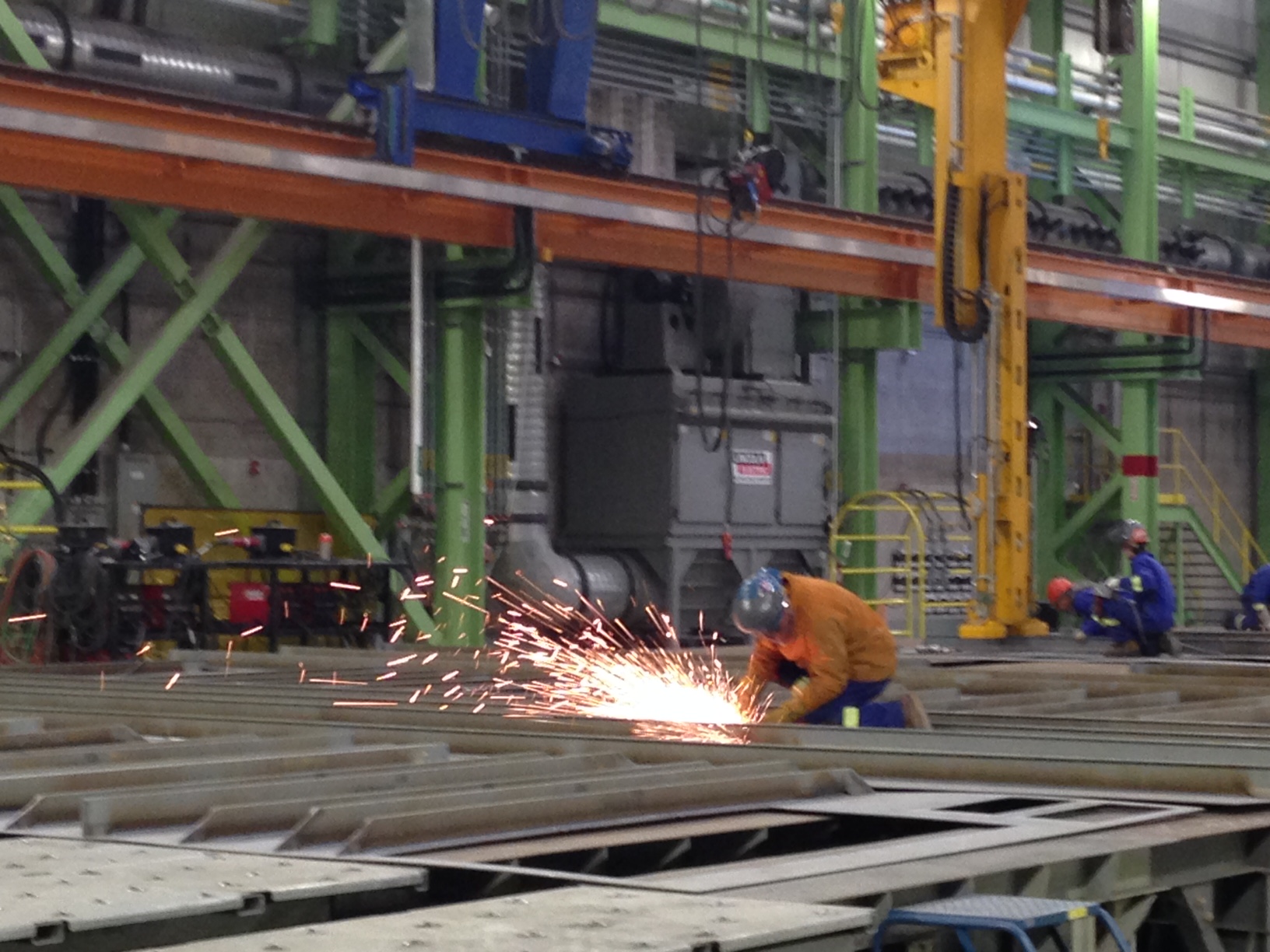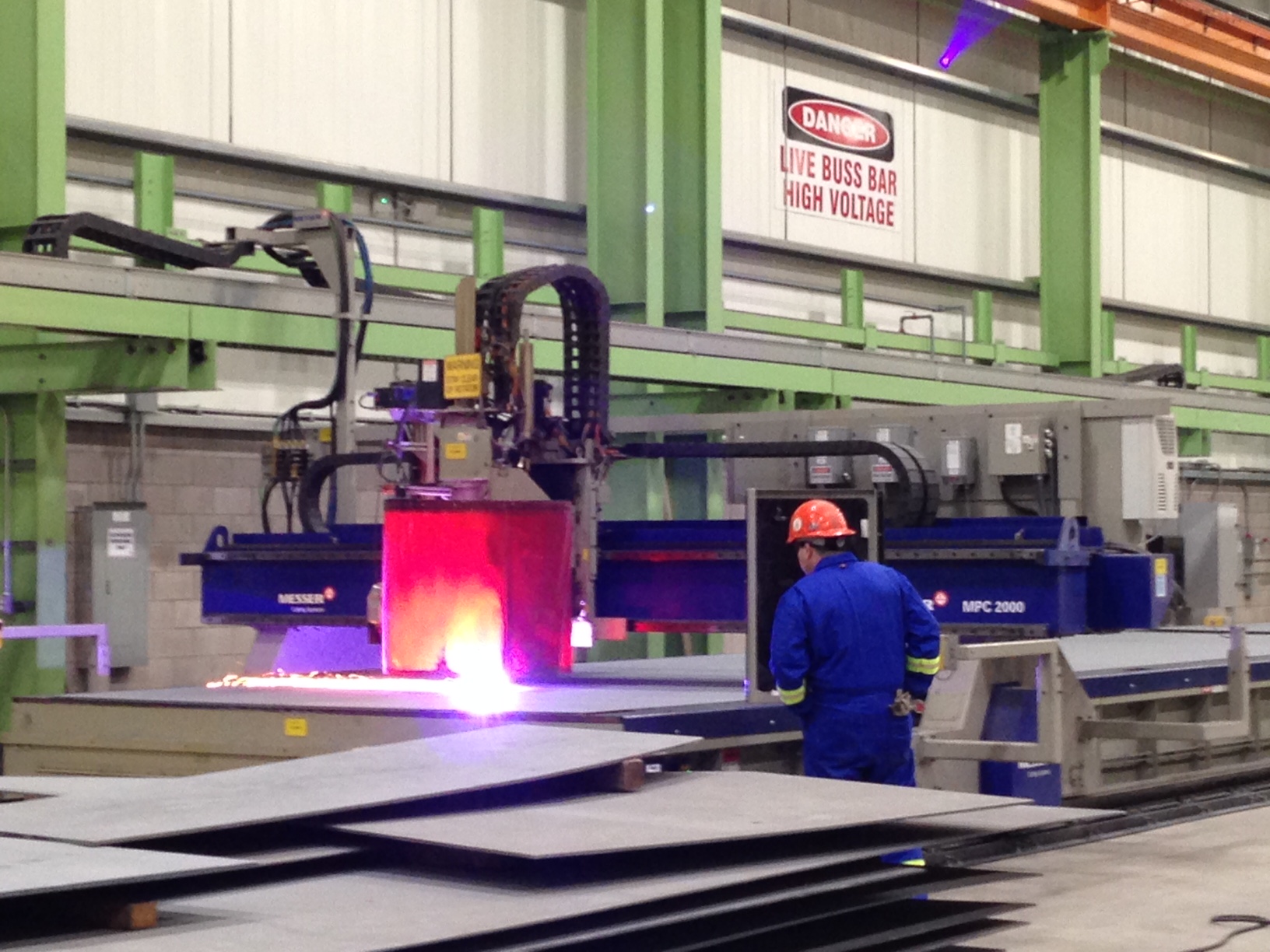 Inside, state-of-the-art computerized cutting machines are used on the steel which is then shaped and welded in place into giant blocks that are stacked into the three mega blocks or sections that make up each ship — aft, centre and bow.
