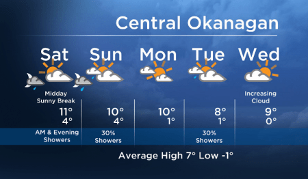 We will continue to see breaks between showers over the next couple of days. The timing of the showers will be on Friday night and Saturday morning. We will see a brief break on Saturday afternoon, and then showers will return Saturday night with the chance of isolated showers on Sunday in between sunny breaks.