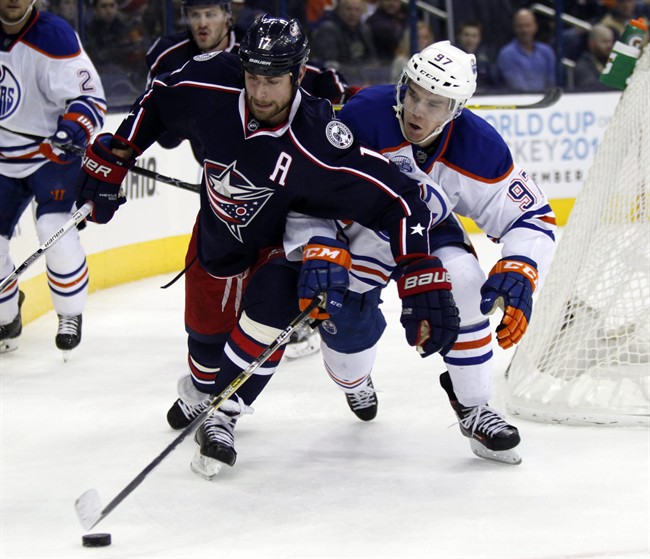 The Jackets jumped in front at 1:54 of the first period when Brandon Dubinsky picked up a deflected puck and backhanded it through the legs of Oilers defenceman Darnell Nurse to Atkinson for his 21st goal of the season.