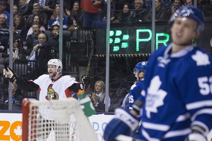 TORONTO – Zack Smith scored the winner as the Ottawa Senators kept their slim playoff hopes alive in Dion Phaneuf’s return to Toronto, defeating the Maple Leafs 3-2 on Saturday.