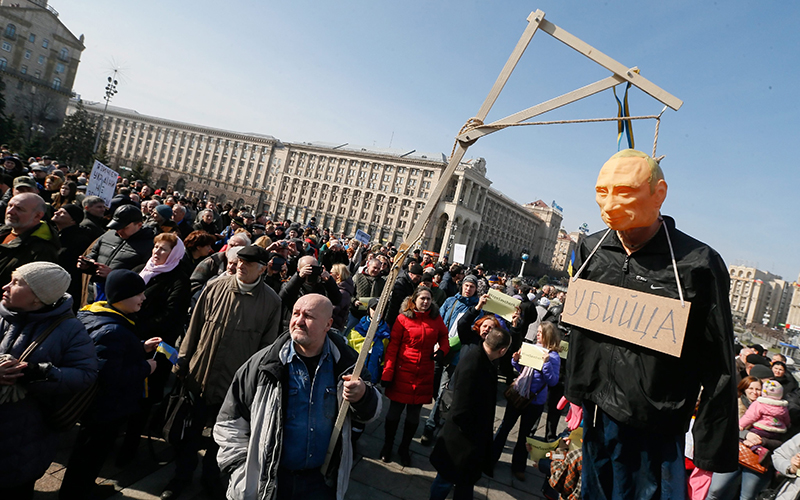 KYIV, Ukraine – About 2,000 people have rallied on Independence Square in Kyiv to demand that Russia release Ukrainian pilot Nadezhda Savchenko.