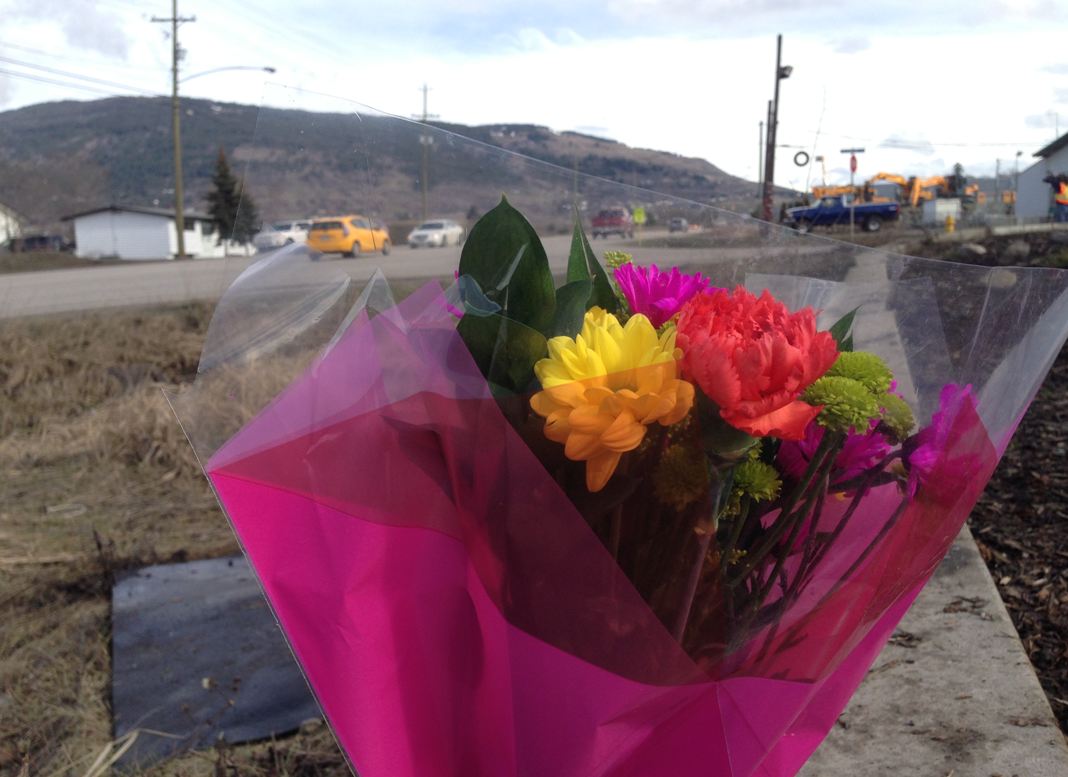 VERNON — Flowers lay on the side of Highway 6 about a kilometre east of Vernon after a fatal accident early Sunday morning that killed two 21-year-old women.
