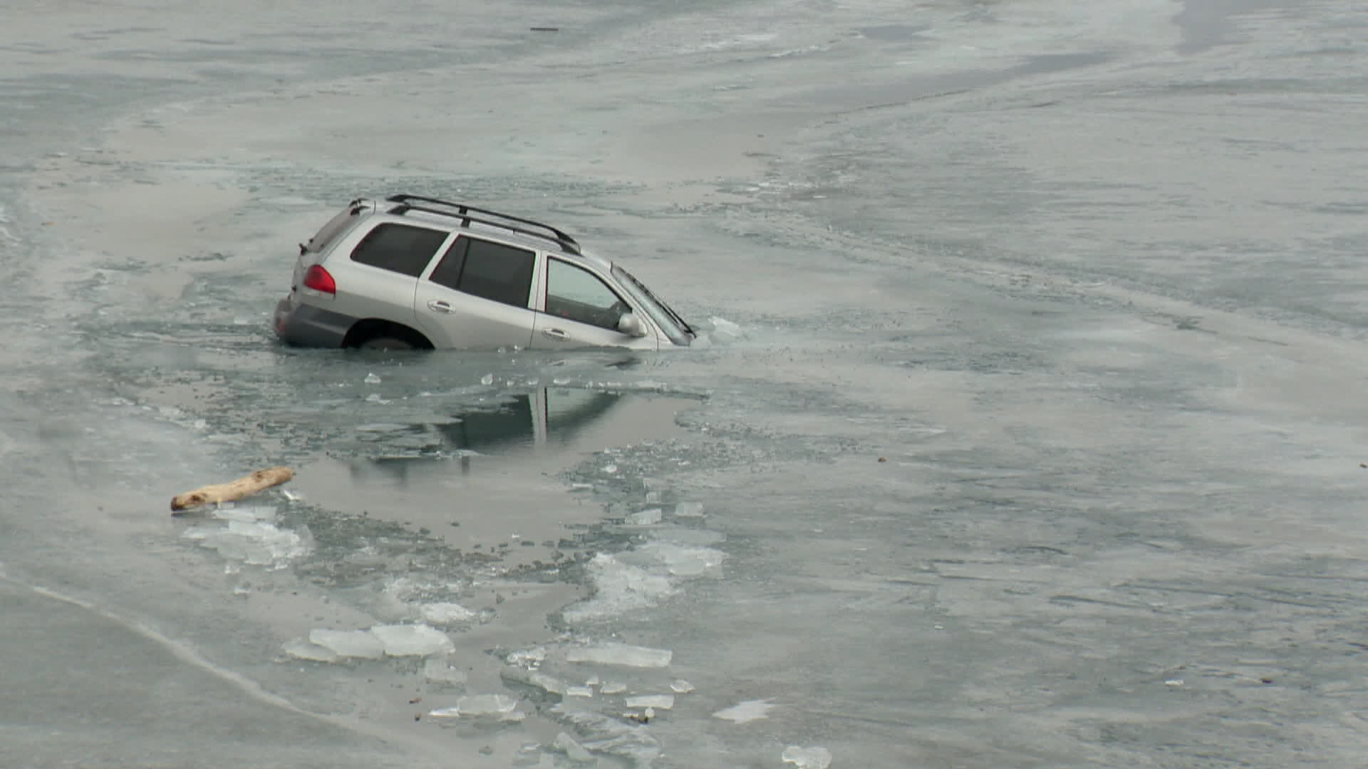 Then on Sunday morning, another SUV drove onto the ice and broke through. The owner was forced to have the vehicle towed.