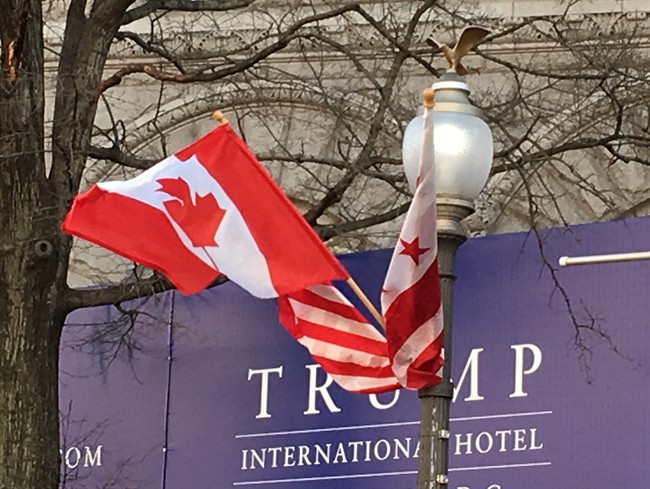 And somehow, in the midst of all this, amid the pomp and preparation for the first U.S. state dinner for a Canadian in 19 years, and the even rarer show of interest in Justin Trudeau, and the decorations along Pennsylvania Avenue, one unavoidable, inescapable name looms behind the fluttering red-and-white flags.