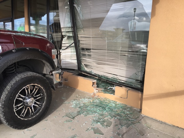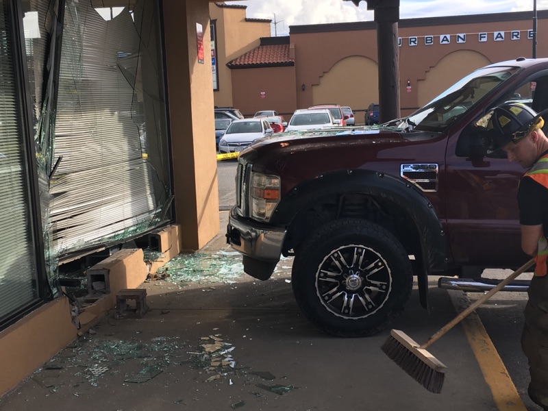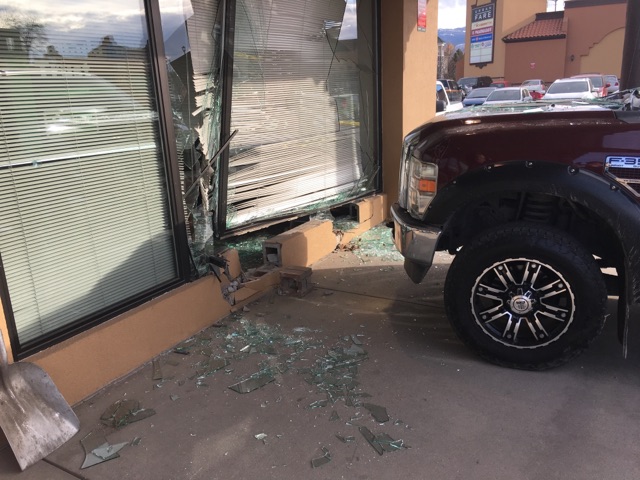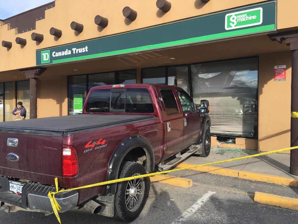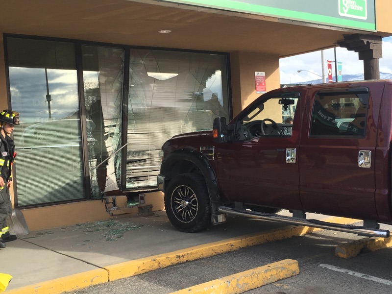 KELOWNA- A truck crashed through the front window of a bank in Mission Park Shopping Centre Tuesday afternoon.