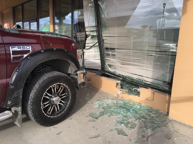 The driver of the Ford truck crashed through TD Bank’s front office window around 4 p.m.