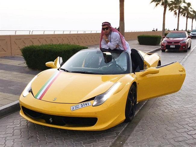 A photo posted on the Instagram account travelwithcody showed a man posing with a yellow Ferrari and the caption reads: “Just landed into Dubai picked up the Ferrari! Don’t worry I won’t speed ;).”