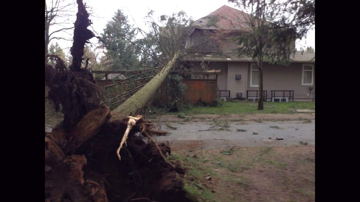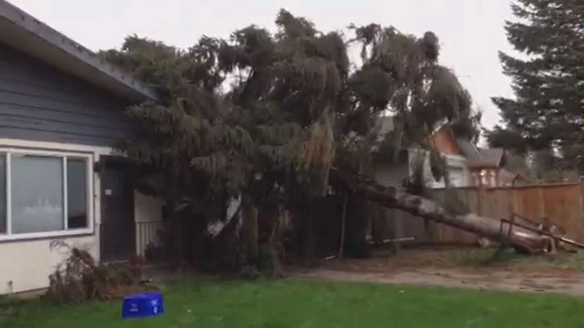 A tree fell on a house in the 4000-block of 209 Street in Langley.