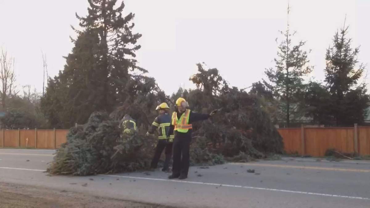 In Richmond, a tree came down on a car on No. 6 Road. It does not appear anyone was injured.