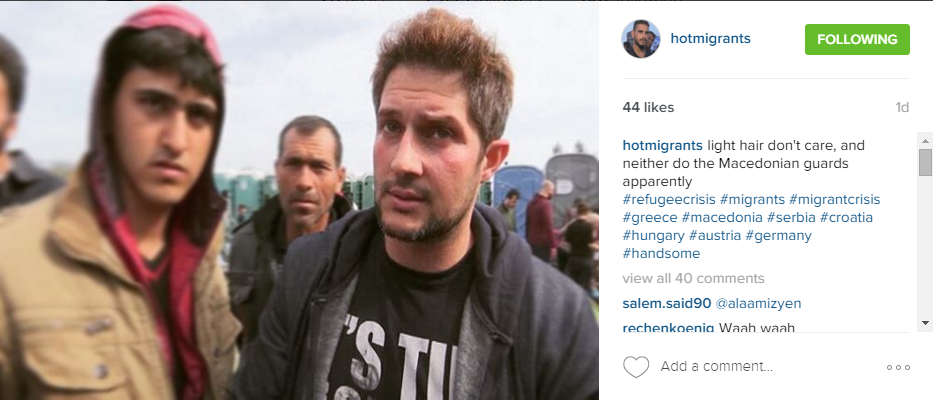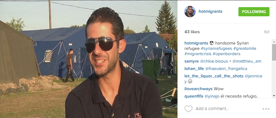The account, @HotMigrants, is self-described as chronicling “handsome men on their journey to Europe.”