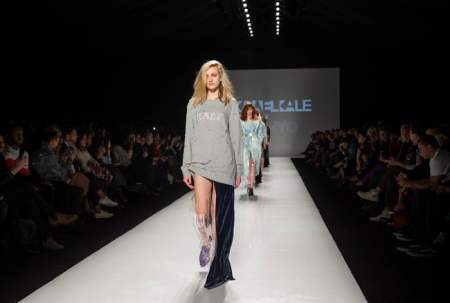 The Toronto-based contemporary womenswear brand delivered an expansive mix of ultra-feminine separates. The range included everything from a form-fitting peplum sleeved top teamed with a body-hugging pencil skirt, to a slinky, sleeved silver dress boasting a plunging neckline.