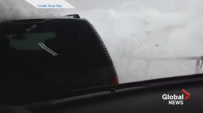Shari Ray shared a video with King 5 in Seattle showing the waves crashing on board the San Juan ferry deck during Sunday’s windstorm.