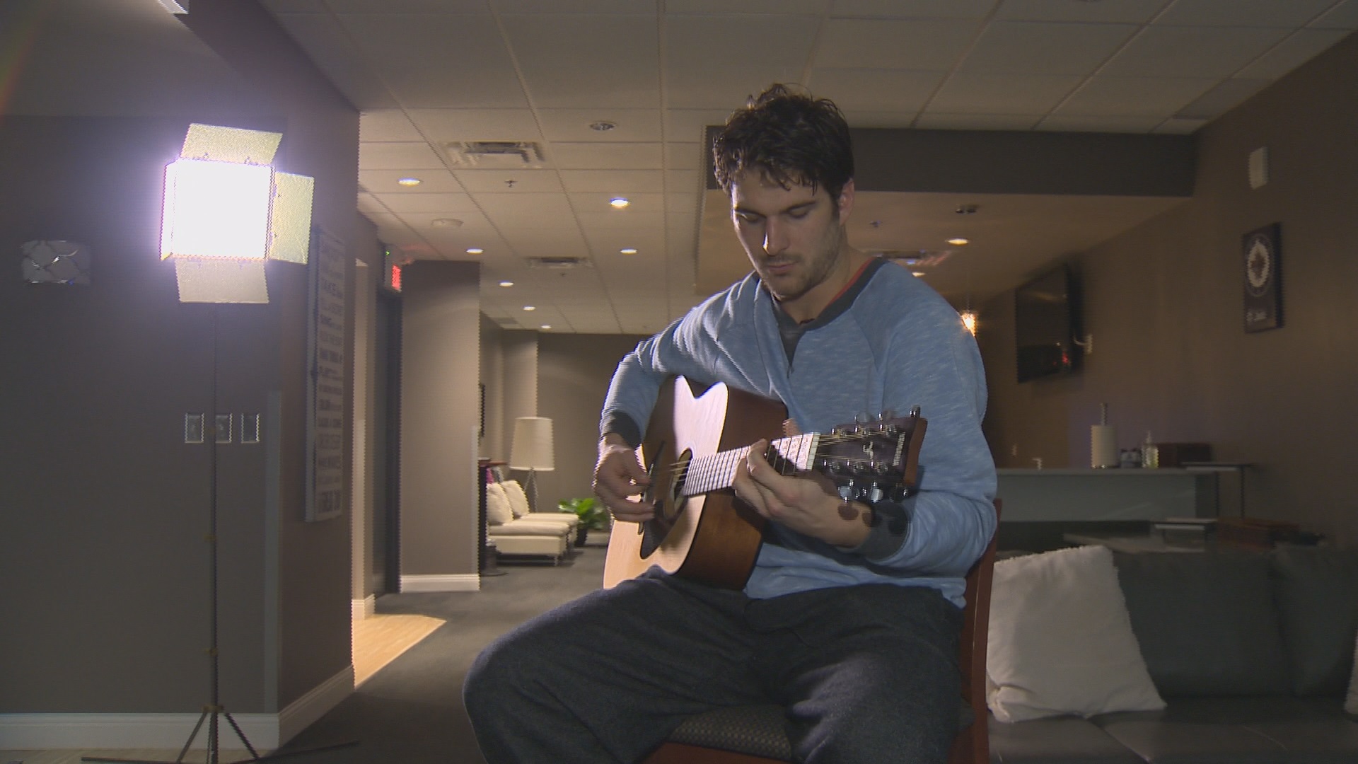 The Jets 5th round draft pick in 2011 has 13 goals and 17 assists in 61 games this season. Hockey was his first love but the music has been a way to get his mind off the game.