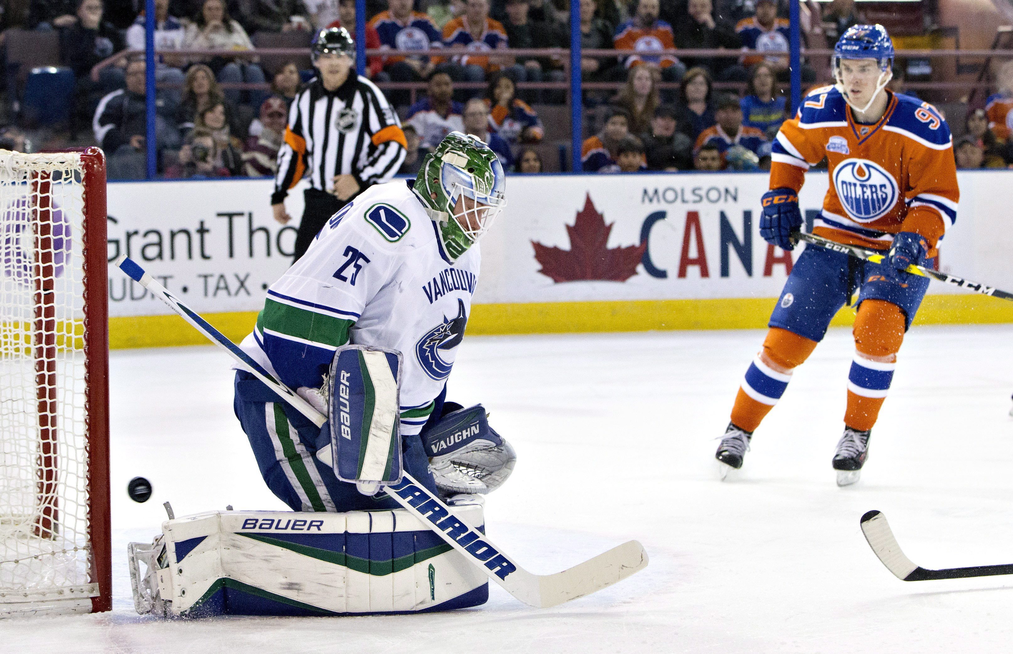 Edmonton caught a bit of a break five minutes into the second as a puck slipped under Talbot while defender Darnell Nurse and Canuck Brendan Gaunce crashed into the net, but the goal didn’t survive a video review due to incidental contact with Talbot.