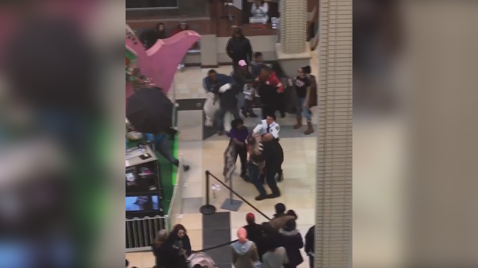 Mall-goers at Newport Center in New Jersey captured video of a man dressed as the Easter bunny involved in a fight on Sunday.