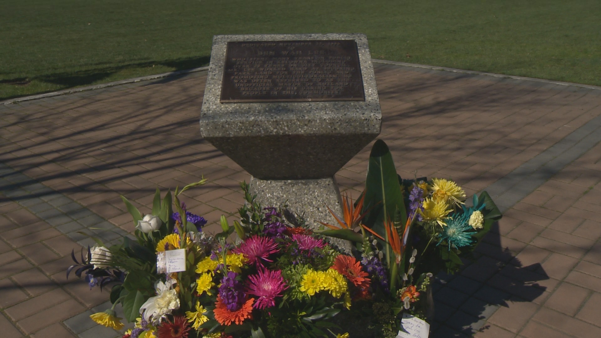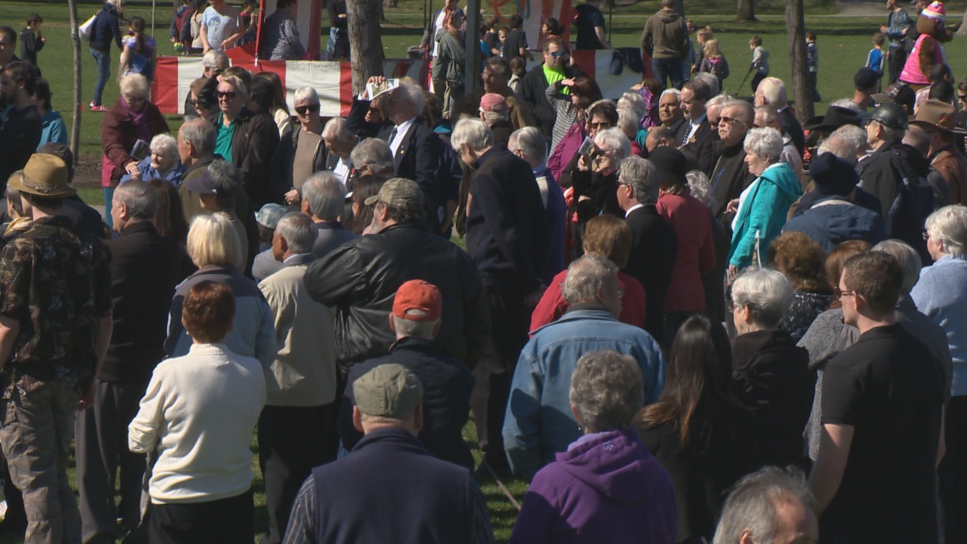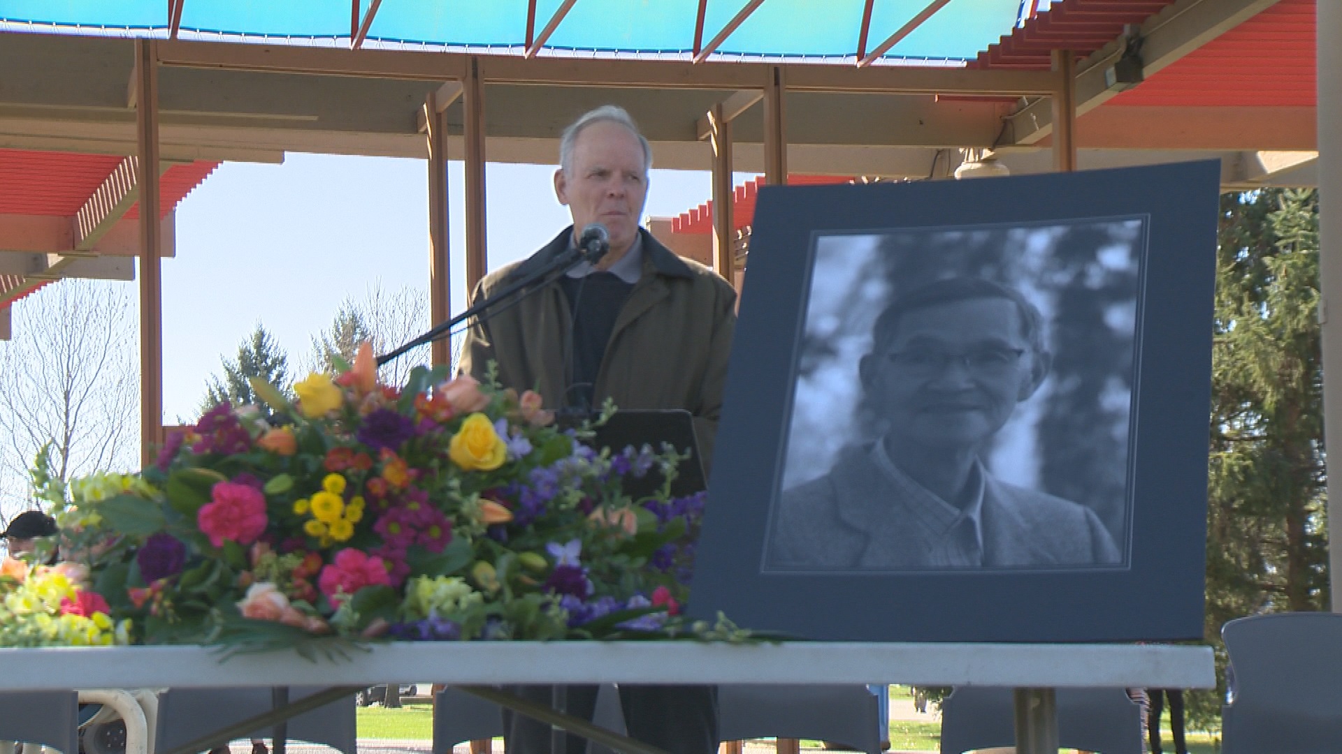 Flags were at half mast as dozens of local politicians, family members and supporters gathered at the park named after him.