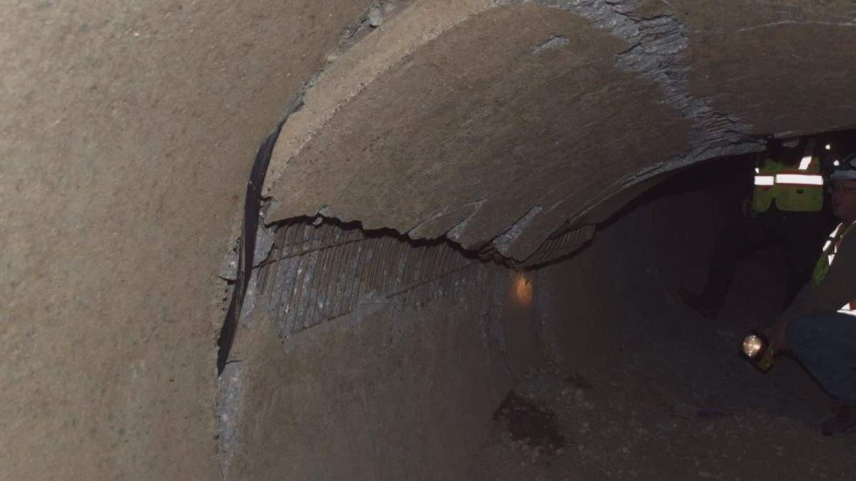The rock slide happened in January, damaging the underground pipe located at the base of the cliff.