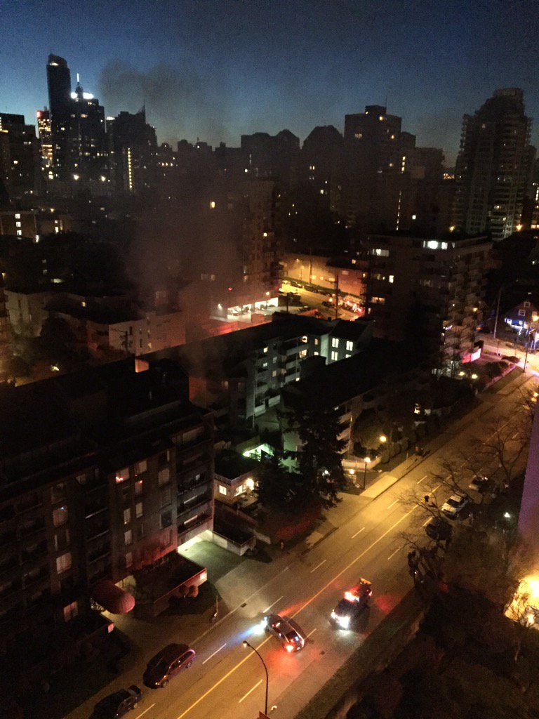 An early morning apartment fire in Vancouver’s West End has left one man with serious burns and forced dozens of others from their homes.