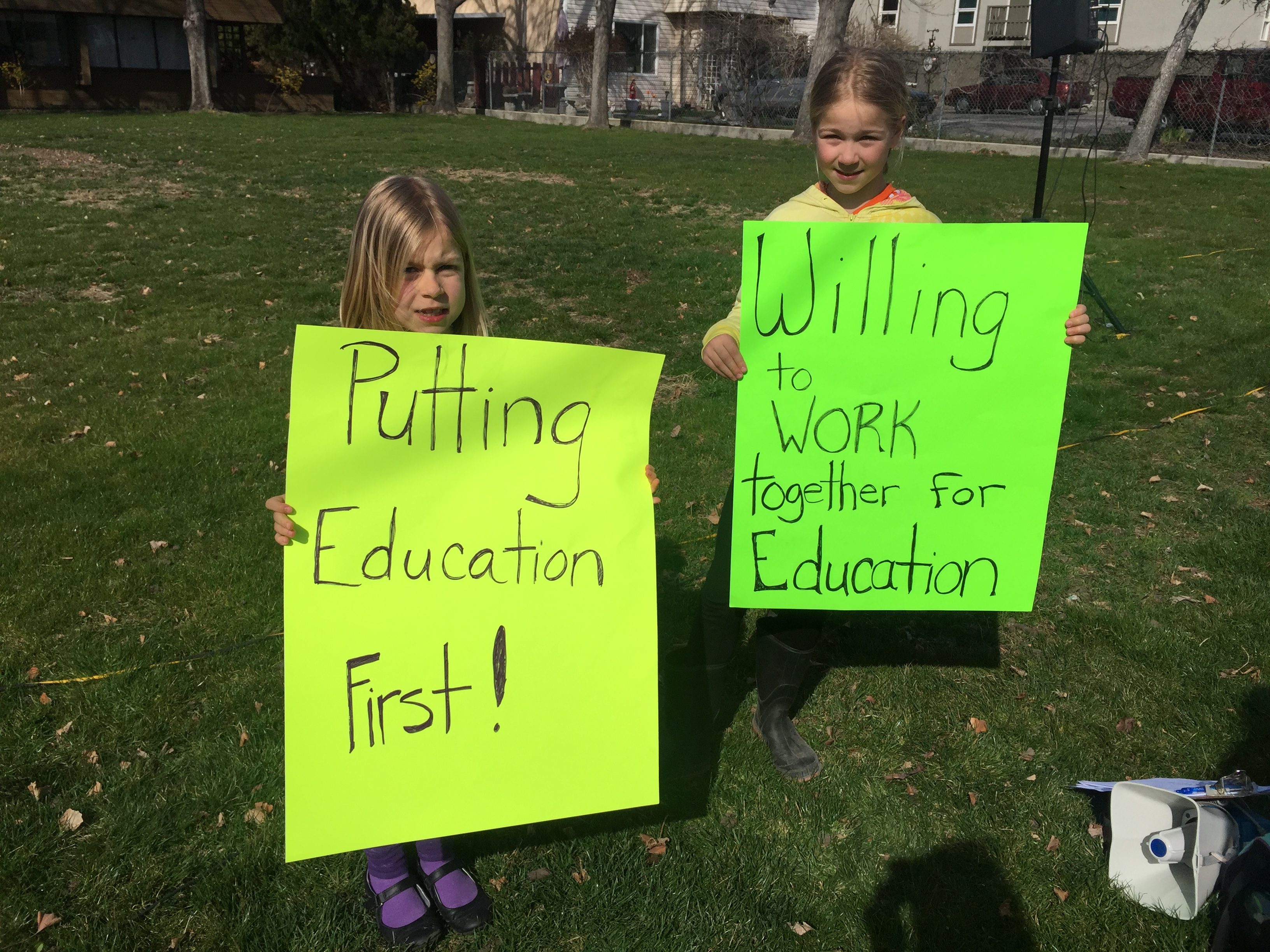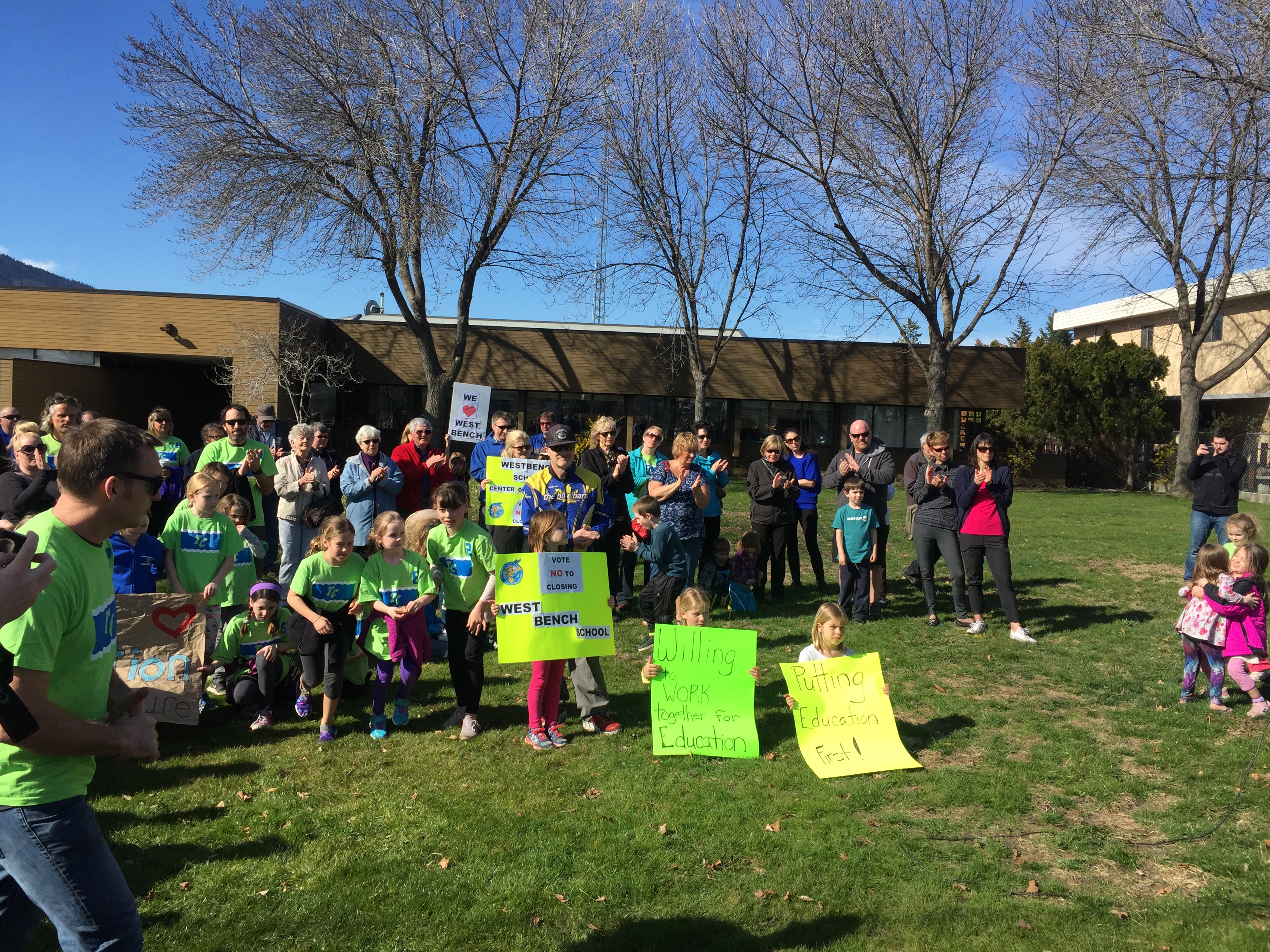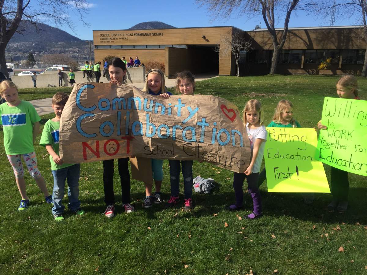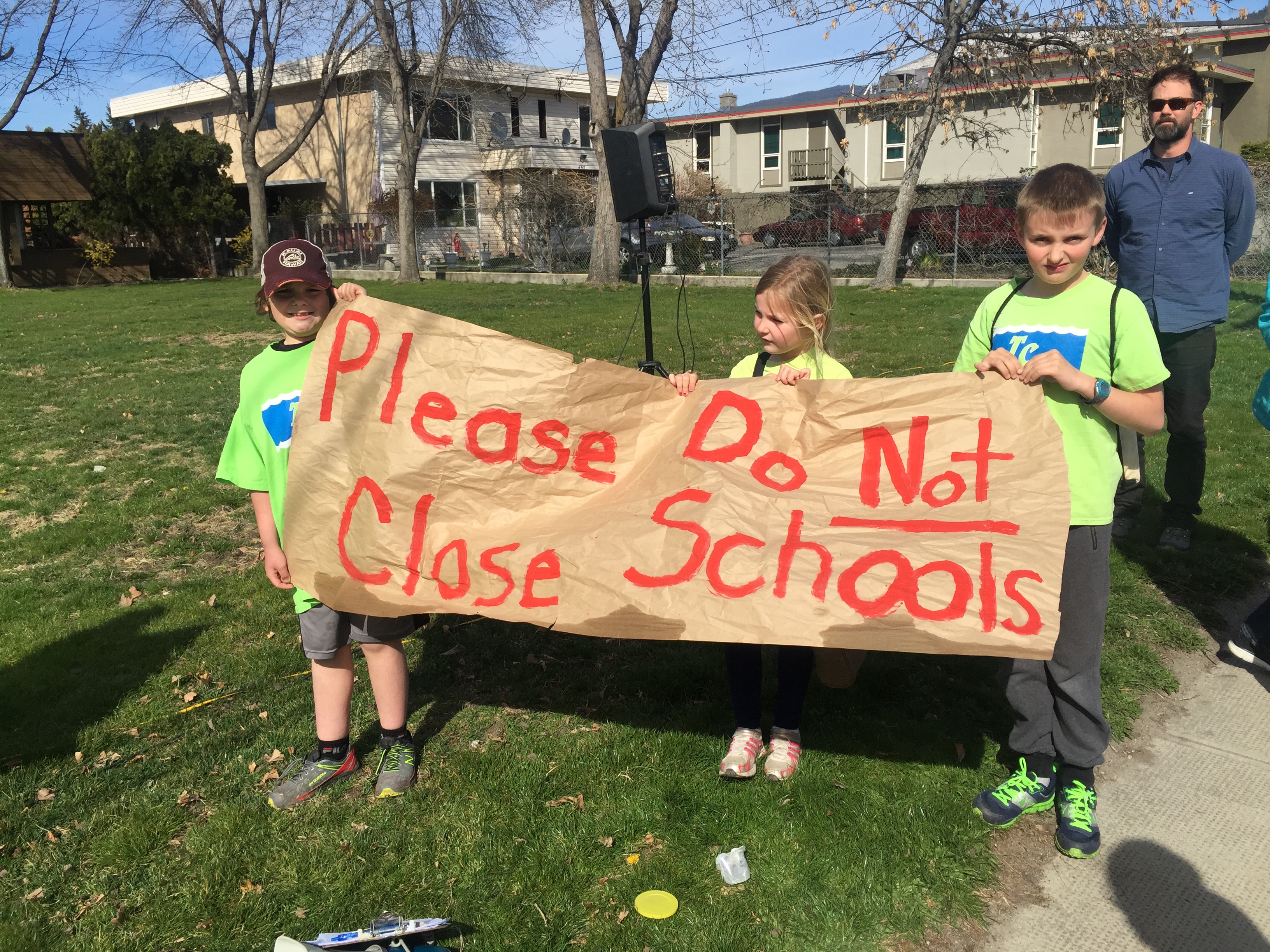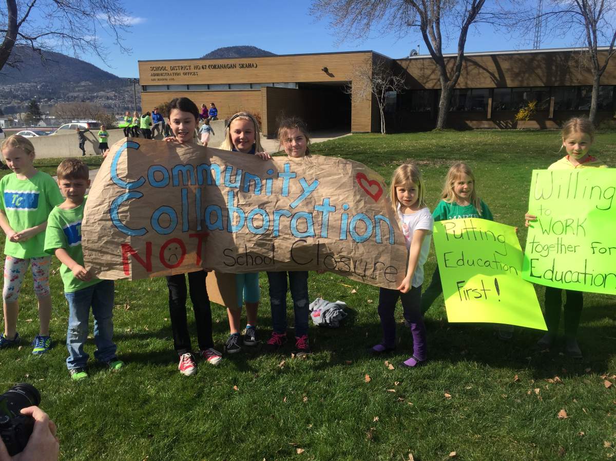 Disappointed at looming closures in the Okanagan Skaha School District, students and parents held a protest Tuesday afternoon on the lawn of the district offices.