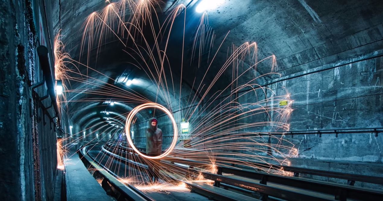 The video shows members of the group taking pictures of the passing cars and even lighting fireworks on the tracks.