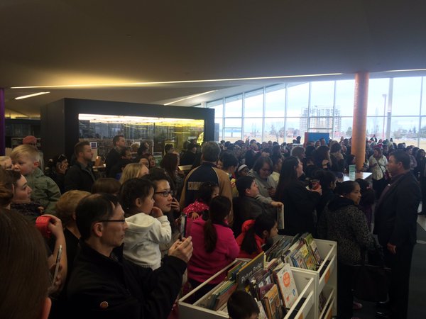 Later in the morning he was scheduled to be at the Mill Woods Edmonton Public Library.