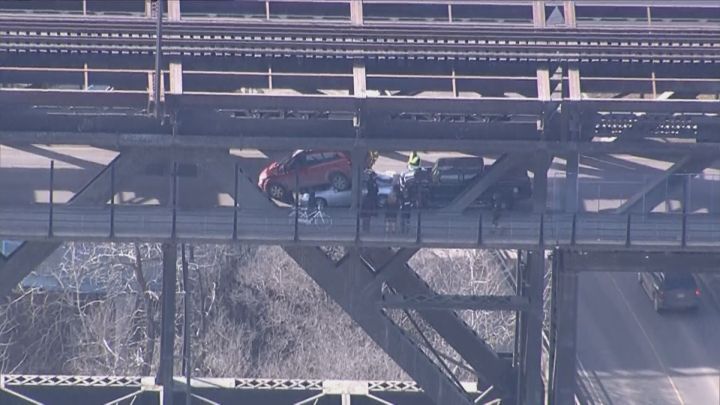 Edmonton police say no one was injured when several vehicles collided on the High Level Bridge during the evening commute Tuesday.