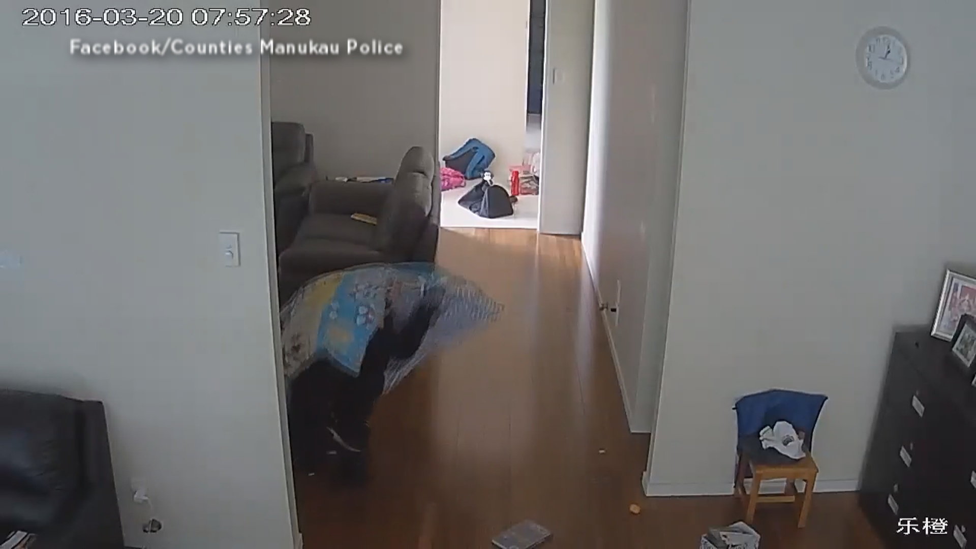 New Zealand police released security camera footage of a robbery suspect who used a child’s blanket to conceal his identity during a burglary.