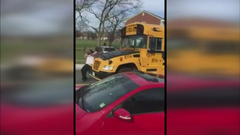 A Massachusetts school bus driver is on paid administrative leave after cell phone video shows a man being dragged by the vehicle.