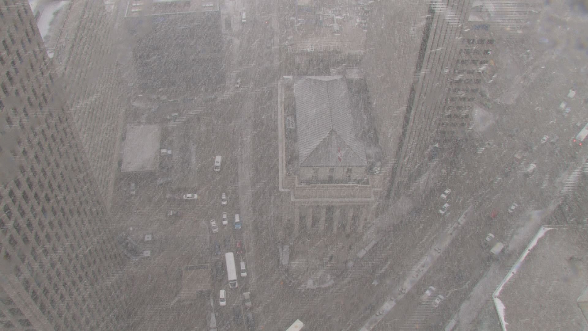 WATCH: Whipping snow seen at Portage Avenue and Main Street