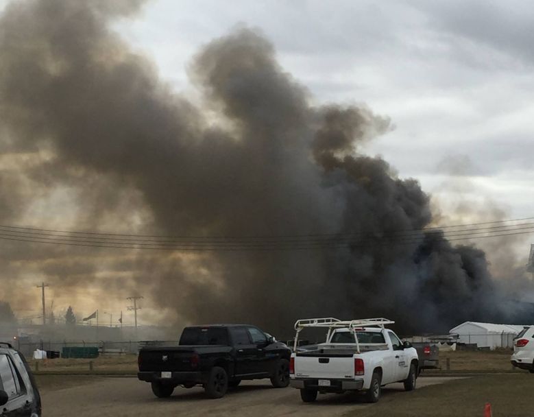 Firefighters called for support from Wetaskiwin and asked to use their aerial truck.