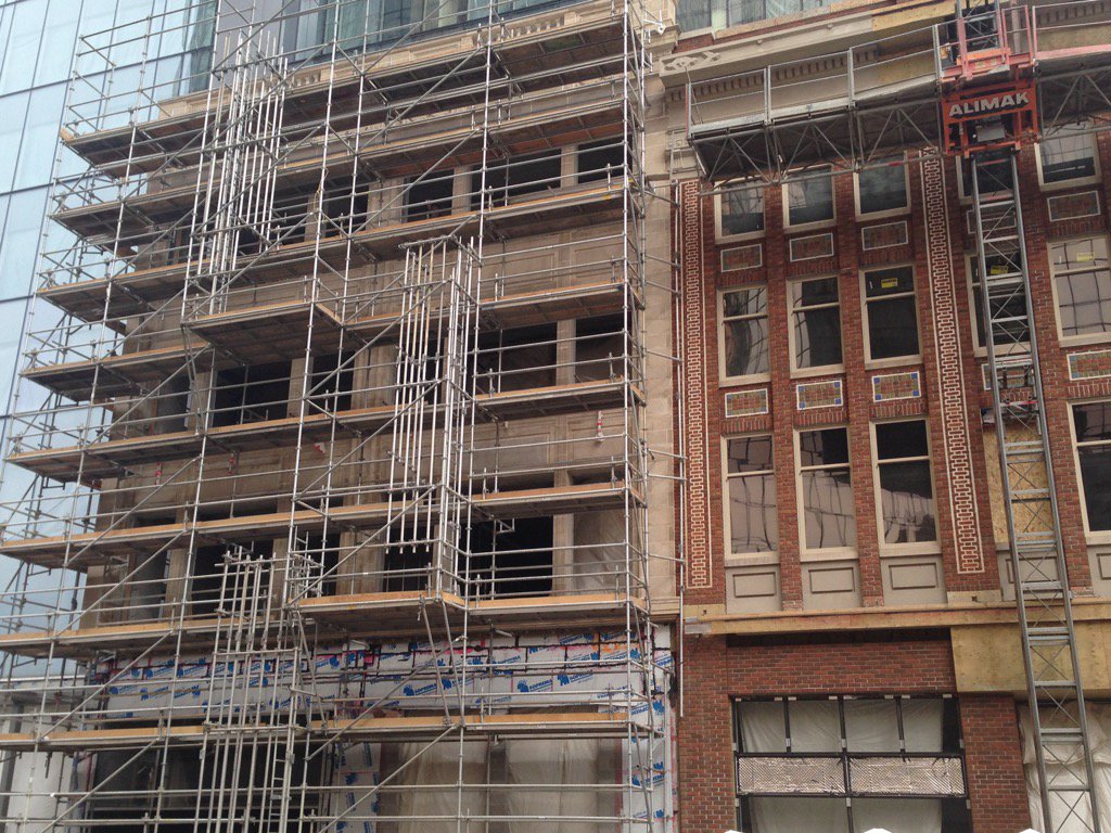 In July 2015, crewed poured concrete for the 13th floor. Decades-old limestone was also be reincorporated into the new 28-storey tower. It is scheduled to be complete this summer.